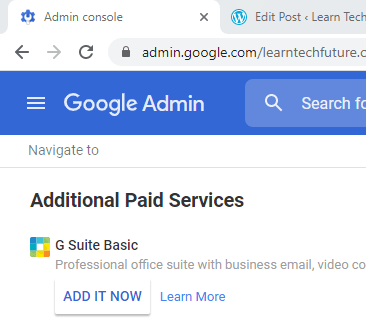 I navigated to Apps > G Suite and clicked on “Add Services”