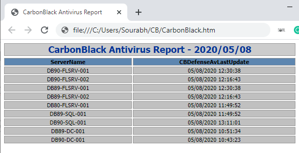 Output will be written to CarbonBlack.htm file. You can send this via email or push this to sharepoint or internal portal.