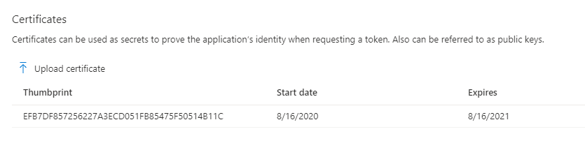 - Make sure, you can see the uploaded thumbprint, You would have to make sure to upload renewed certificate.