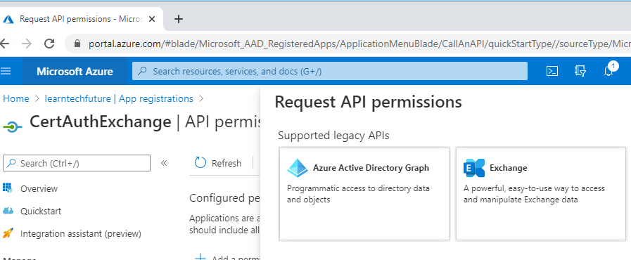 Upload Self Signed Certificate to Azure App and Grant Exch Role
