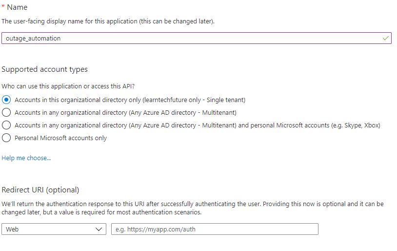 - Navigate to Azure Active Directory > App registrations and click on New registration.